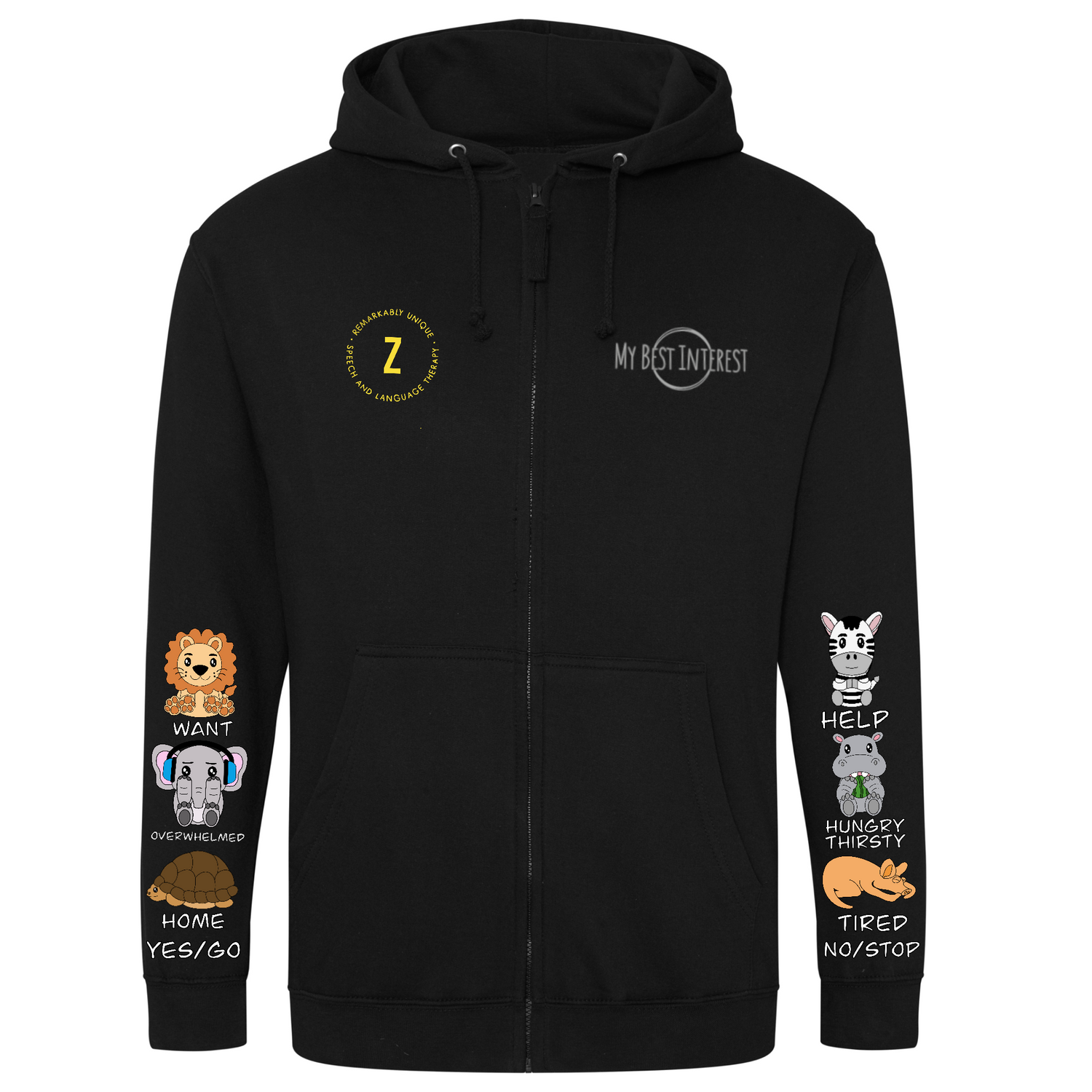 Hoodies and sweatshirts come in Kids & Adult sizes, with zip options for hoodies.