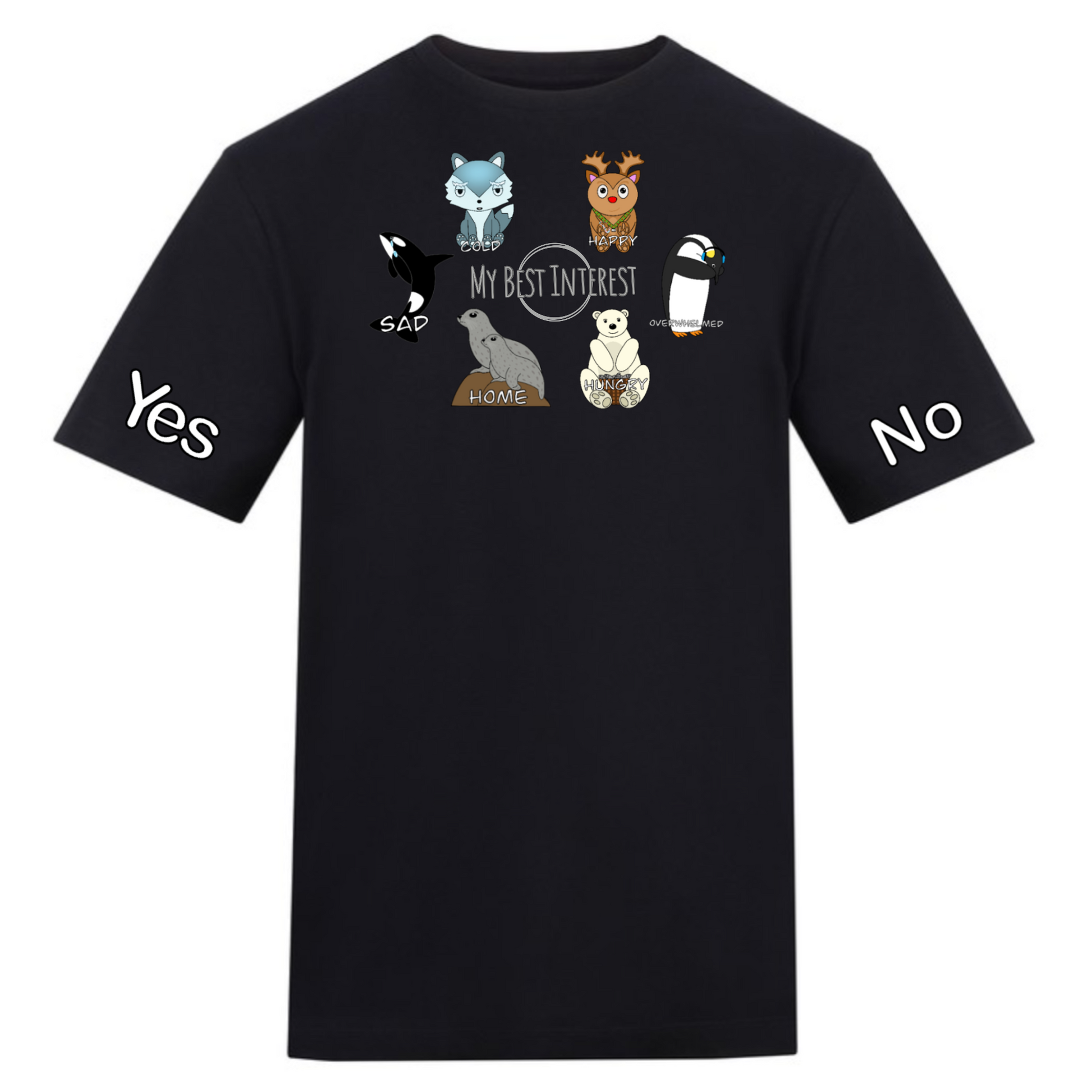 Each of our 'Communication Clothing' items features fun pictures you can point to when you are unable to communicate verbally. Just use the images to show how you’re feeling or to answer questions without saying a word! Each creature shows how you’re feeling: