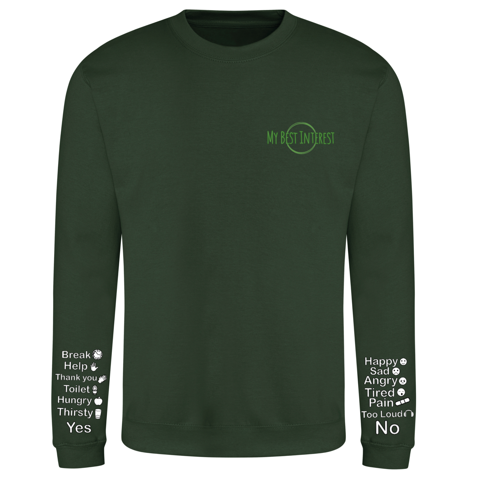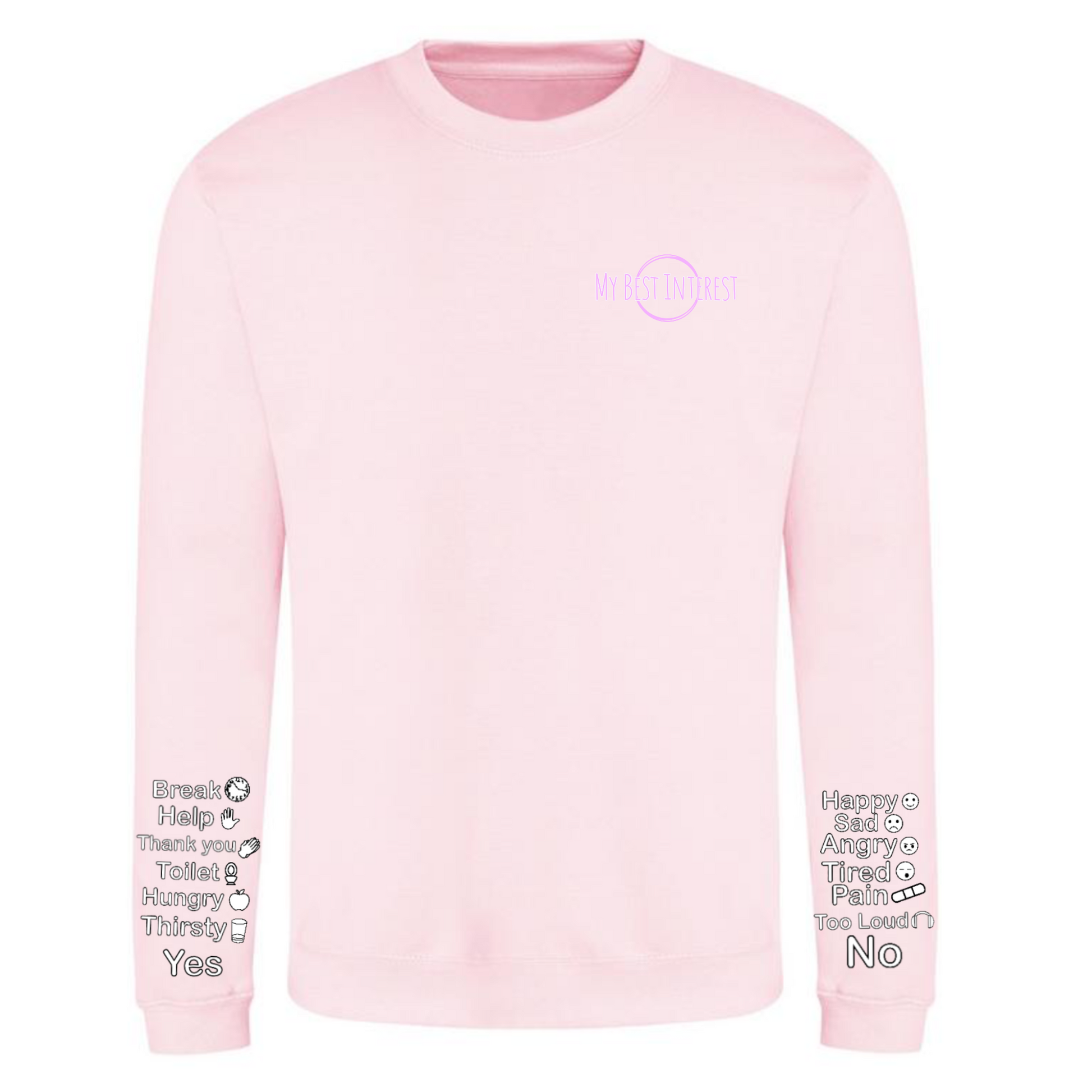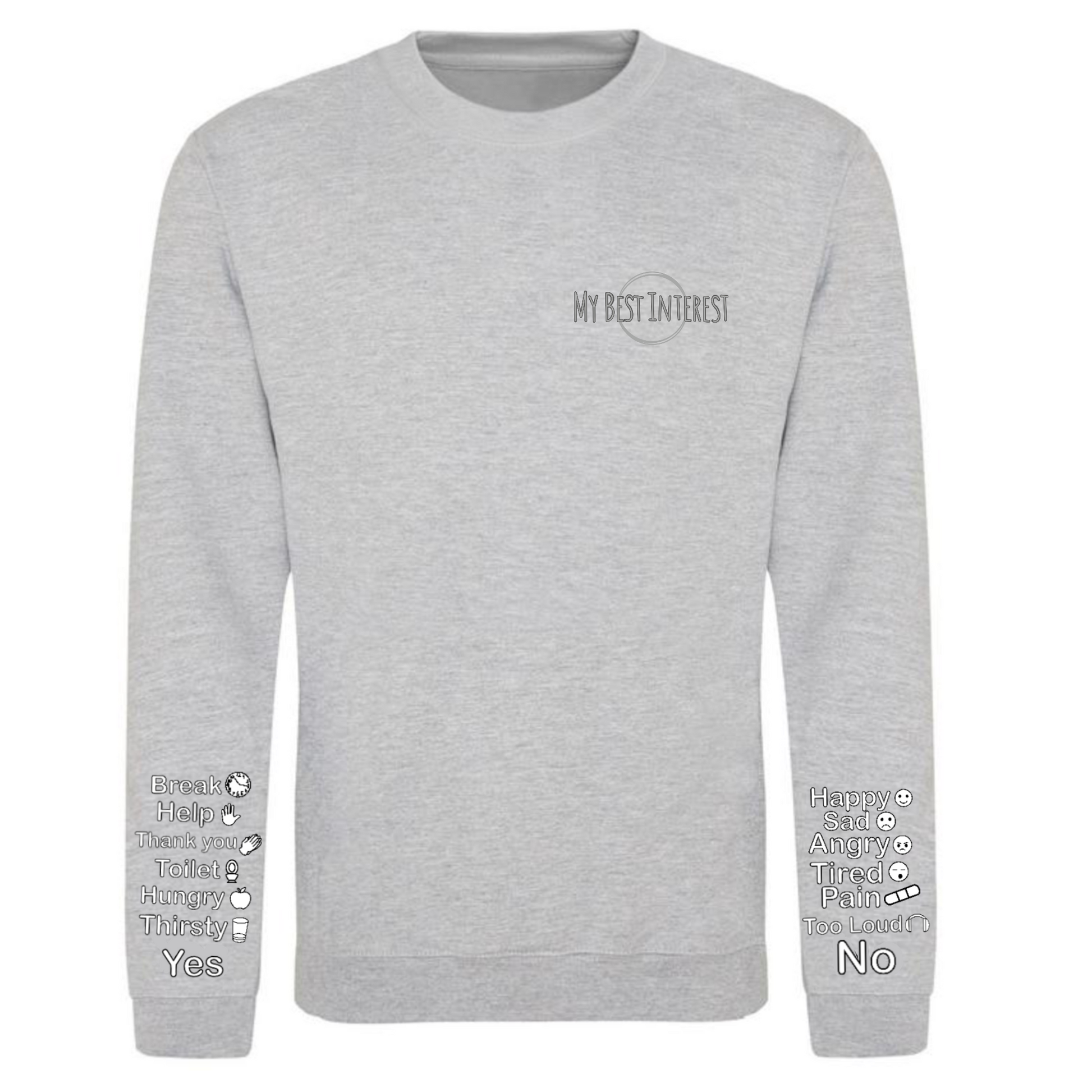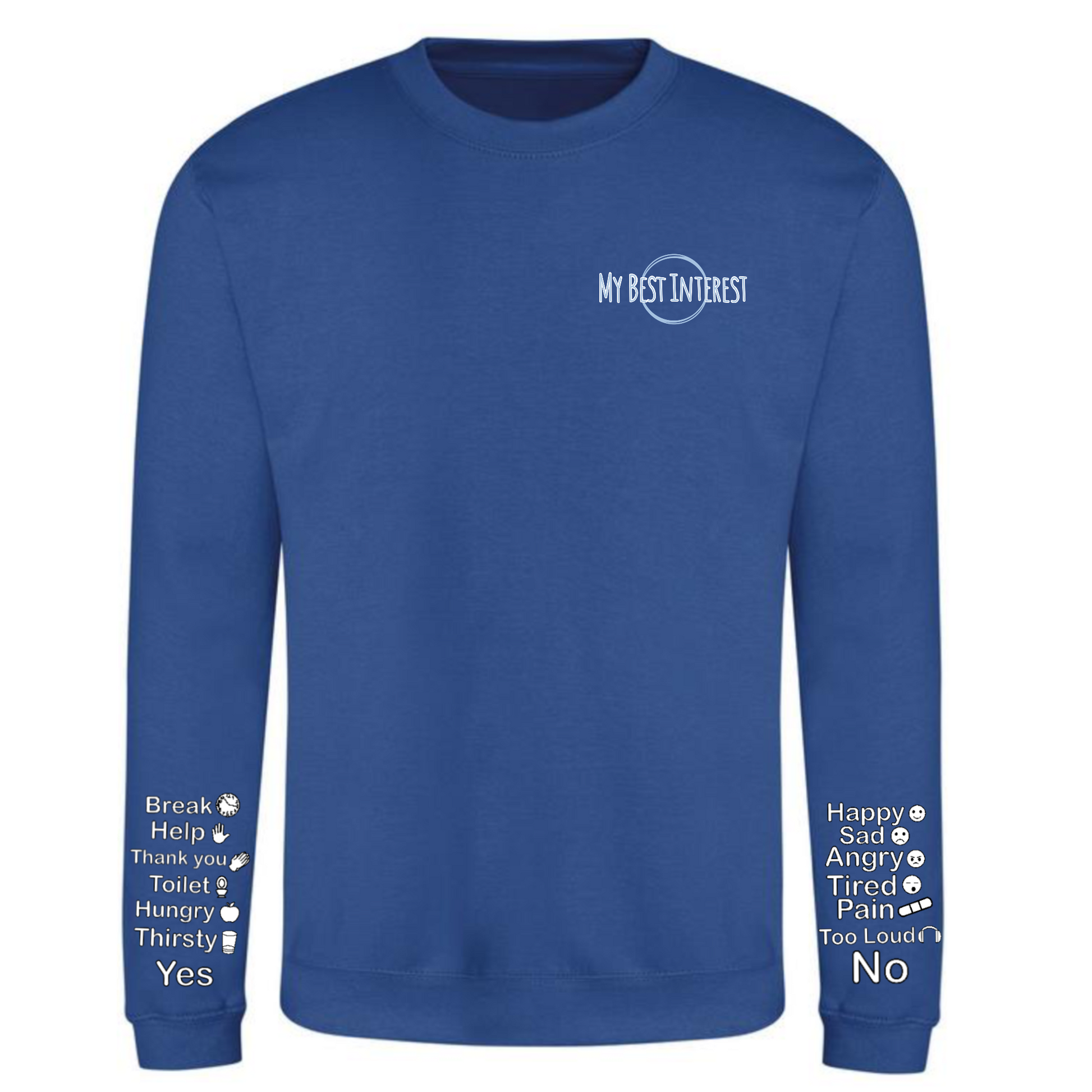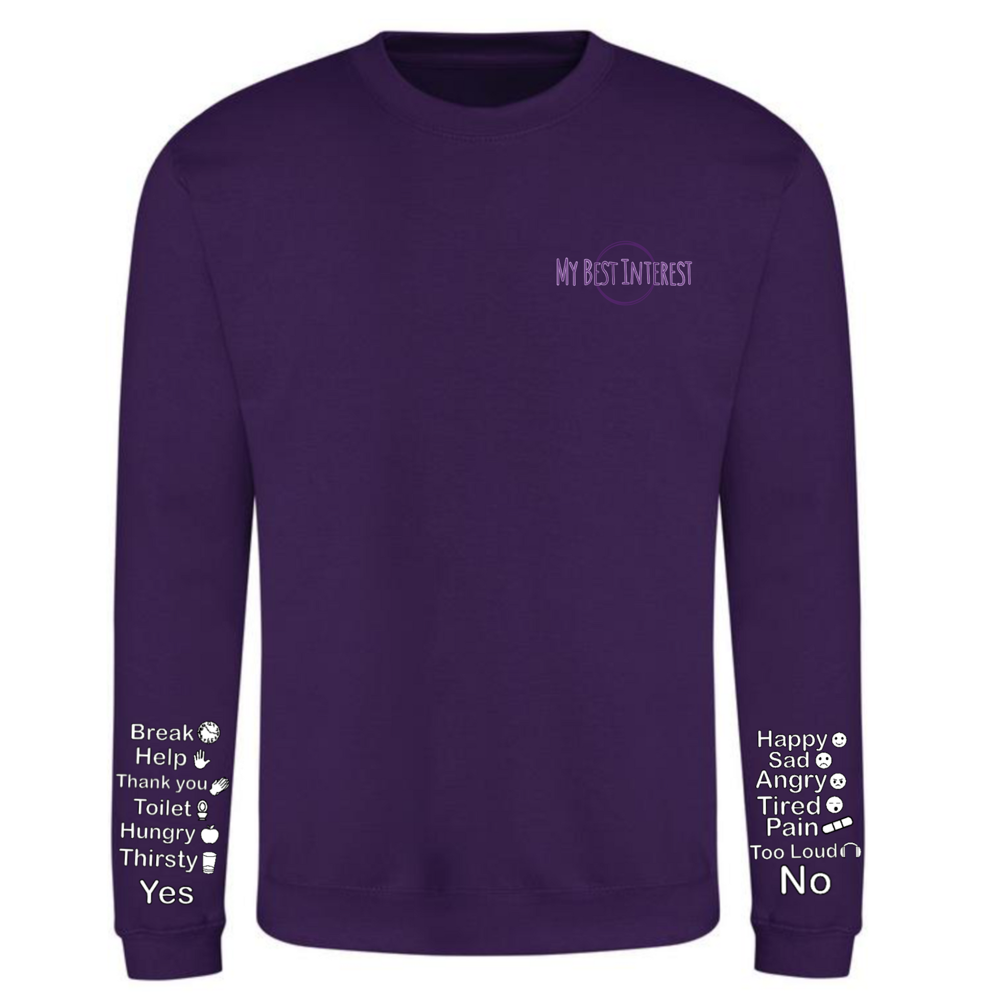 This'Communication Clothing' item features words and little icons that you can point to when you are unable to communicate verbally. Just use the words or icons to show how you’re feeling or to answer questions without saying a word! The words are: